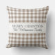 Wonderful festive holiday rustic Christmas pillow with the text Merry Christmas and your family name in modern typography and elegant script calligraphy. The pillow has a beautiful taupe gingham pattern in the colour dry dock. Simply add your family name or monogram. Exclusively designed for you by Happy Dolphin Studio. If you need any help or matching products, please contact us at happydolphinstudio@outlook.com. We're happy to help you make your Christmas holiday the most wonderful day!