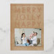 Rustic Merry Jolly Happy Blue Family Photo Christmas Gold Rose Foil Holiday Card. Happy, jolly, merry in gold foil on a rustic beige background. Add your family photo and name.