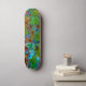 Colourful rustic metal surface pattern with a vivid cracked peeling paint patina. An abstract grunge texture photo of an artistic oxidised weathered metallic surface. Beauty in decay, this skateboard is a gift idea which has a story to tell.