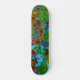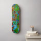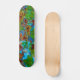 Colourful rustic metal surface pattern with a vivid cracked peeling paint patina. An abstract grunge texture photo of an artistic oxidised weathered metallic surface. Beauty in decay, this flashback shaped skateboard is a gift idea which has a story to tell.