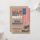 This rustic US Military boots & American flag deployment / overseas active duty base going away / farewell Party double- sided invitation with the saying "CALL OF DUTY PARTY" over rustic kraft background on front, and "When Duty Calls, The Brave Answer" design on back, is a great way to send off a brave Airman (Air Force), Guardian (Space Force), Soldier (Army), Marine (Marines), Sailor (Navy), or Coast Guardsman (Coast Guard) who is heading to deployment / to their new overseas Active Duty Base! ♥ Lovingly created by an Air Force Mom ♥ Featuring a rustic kraft background on both sides with drip USA flag, watercolor US flag combat boots, and vintage red, white, and distressed blue patriotic typography, it is an invitation template for you to easily personalize each line for any branch of service! Need to adjust placement or make fonts bigger/smaller to fit the space provided? No problem! Simply click the blue "Edit using design tool" button at the bottom of the "Personalize" window, click on the element that needs adjusting, and click the "done" button at the top right corner to complete. **Our son is a recent F-16 Crew Chief vet, so I too, had a hard time finding appropriate invitations and cards for BMT & Graduation & Active Duty - all my designs for the full training process, here in my Zazzle store, were created in honour of our son and all our brave military service personnel and families. See all my invitations / cards (available for print & ship or instant digital download for those in a rush) / clothing / vinyl graduation banners / and much more for BMT, Grad Weekend and beyond, available in my store by clicking the blue “by FigLilyCo-military” link in the upper right hand corner of this screen and then click my store name under my photo to see the entire collection. **Custom order requests are always welcome - click the "message" button, or email direct (with a quick response): contact@figandlilyco.com. ♥ From this proud military family to you and yours - we send our sincere blessings, and HUGE thanks for the service, courage, and sacrifice of your US Service Personnel ♥