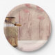Paper plates with a rustic country design. An old rusting milk can with wheat and faded red poppies in the background set against a faint wood panel. Wood is just an image, not real.