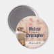 Wedding commemorative / save the date magnet with your personalized names and wedding date. Designed with a rustic country theme. An old rusting milk can with wheat and faded red flowers in the background set against a faint wood panel.