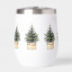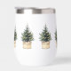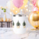 This simple and minimal Christmas wine tumbler features small rustic Christmas tree with white lights. Personalize with your choice of special text. Makes great personalized party favours for your holiday event.