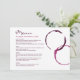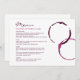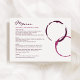 Rustic modern burgundy red wine glass stain menu card design includes custom text for the event date, menu, and wine pairing information.