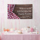 Celebrate your family reunion with this perfect picnic or barbecue banner - red and white chequerboard plaid table cloth covering a dark wood texture design with modern typography showcasing your family name and celebration venue and date in an easily customizable way. Great as a welcome sign for any family gathering!