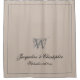 Rustic Monogram + Both Names Newlywed Wedding Gift Chic Shower Curtain. Personalized warm beige and grey monogrammed Shower Curtain. Cool classic script for the monogram initial, the names of the bride and groom and the wedding date on a solid beige background. Perfect gift for newly weds, or beautiful for your own bathroom. Click personalize this template to customize it with both your names, your monogram last name initial and the established date quickly and easily. 30 Day Money Back Guarantee. Ships Worldwide fast.