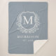 Rustic Monogram Dusty Blue Crest Newlywed Wedding Sherpa Blanket