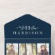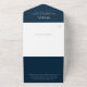 Rustic monogram photo collage trifold navy holiday all in one invitation
