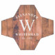 This rustic design has a wood background and family monogram.