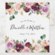 Elegant, floral wedding wine labels featuring a top and bottom border of watercolor roses and greenery in shades of blush pink, peach, burgundy, purple & green. Personalize the custom wine labels by adding your names & wedding date. Design coordinates with our Rustic Moody Floral wedding collection.