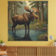 Loose yourself in the enchanting allure of this elegant bohemian moose artwork, where nature's grandeur meets timeless artistry. Set against a lush forest backdrop, this exquisite piece captures the serene beauty of a verdant woodland, rich with intricate details of flora and towering trees. The moose, standing majestically in a tranquil body of water, observes its surroundings amidst a tapestry of lush foliage, embodying the harmonious blend of botanical organic forms and nature's splendour. In the distance, the majestic mountains rise, completing the idyllic scene. Each element of the artwork, from the curling tendrils of the plants to the fine veining on the moose's antlers, is rendered with meticulous care, evoking a sense of nostalgia and wonder. This piece is a perfect homage to the elegance and intricacy of Art Nouveau design, offering a timeless window into a world where nature and art intertwine.