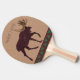 Personalize this now! From rustic country charm for the weekend cabin to rugged man cave, this walking moose personalized ping pong paddle is a fun gift idea. Set on a light tan background and border of chocolate brown and pine green, the bull moose design contains the distressed and grainy look that suggests actual leather, but it's not! It's just my transformation of my original moose drawing into these faux leather images. THIS PING PONG PADDLE IS PRINTED AND CONTAINS NO ACTUAL SUEDE OR HIDE.