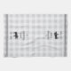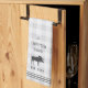 Customize your kitchen with this cute personalized towel featuring your family name or house name and year established in rich charcoal grey lettering accented with a moose illustration on a tonal plaid background.