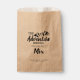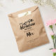 The design features the words 'The Adventure begins in the perfect mix' in a modern script typography with a mountains accent. This cute wedding favour bag is perfect for sending guests home with cookies, candy or other sweet treats. Customize it with the couple's names and wedding date.