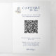 This beautifully designed six-panel printable wedding trifold blends rustic charm with refined watercolor elegance. Featuring a soft palette of dusty blue, navy, cream, and gold, this layout includes thoughtful details across both sides: a welcome panel with custom mountain illustration, floral corner accents, a full wedding menu with illustrated pig teaser, a Slovak-English phrase “dictionary,” photo sharing QR code panel, scratch card space, and a trio of whimsically elegant dancing bears.