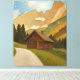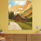 A cozy wooden cabin set in a scenic mountain landscape, crafted in a layered paper collage style. Perfect rustic decor for adding warmth and nature-inspired charm to any space.