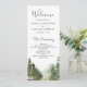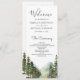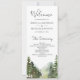 Élégant programme de mariage avec de belles montagnes et des pins avec typographie moderne.