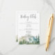 Escape to a serene mountain retreat with your wedding details enclosure card. This exquisite design showcases a breathtaking watercolor painting of a majestic mountain, its slopes draped in lush pine trees, mirroring their beauty in the crystal-clear waters below. The muted natural tones of tan, greens, teal blues, and greys create a timeless and sophisticated atmosphere, reminiscent of a peaceful alpine escape. The clean white background and modern font text add a touch of contemporary elegance, balancing the natural beauty of the scene. This design will not only announce your special day but also set the perfect tone for a truly memorable celebration, inviting your guests to join you on a journey of tranquillity and love. Created by Simply Farmhouse Press.