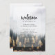 Rustic Mountain Pine Trees Fall Forest Design with soft fading photography image. A rustic outdoor landscape scene for an adventurous lodge, mountain, retreat wedding, in dark green, greys, gold and white. - Wedding Ceremony Program!