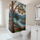 Rustic mountain range landscape stain glass