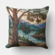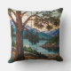 Rustic mountain range landscape stain glass outdoor pillow