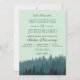 Rustic Mountain wedding invitation in shades of blue and green. The background image has a forest of pine trees on the bottom in blue and green. The mountain image is also included on the back of the card. You can change the text, font, and font colours. This wedding invitation matches a collection in my store.