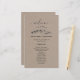 Beautiful MOUNTAIN WEDDING program paper sheet design featuring a sketched mountain motif and a big "welcome" in an elegant script as well as the wedding program details on a rustic kraft-textured background for you to personalize.