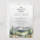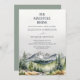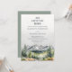 This beautiful rustic adventure begins wedding invitation features watercolor painted mountains landscape, forest, pine trees and lovely sage green backing, perfect for fall, winter or destination wedding. Personalize it with the details of your wedding day.