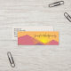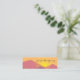 Mini business cards with a graphic illustration featuring many mountain tops with bright yellow sunlight setting behind the mountains. Made with geometric polygonal shapes.Simple minimalist design. Colours range from dark blue to desert red.