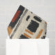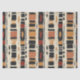 Earthy geometric pattern tissue paper inspired by tribal mudcloth textiles, featuring hand-painted rectangles, diamonds, and triangles in charcoal black and terracotta on a textured beige background. A warm boho design ideal for rustic décor lovers, artisan style fans, and anyone drawn to earthy geometric aesthetics.