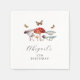 Rustic birthday party paper napkin featuring watercolor illustration of mushrooms and moths.