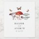 Rustic wedding wine bottle label featuring watercolor illustration of mushrooms and moths.