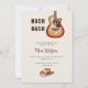 Rustic Watercolor Cowgirl boots, hat and guitar Music city Nash Bash Bachelorette weekend invitation with event in the back.