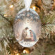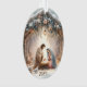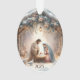 This serene nativity scene captures the peaceful beauty of the Holy Family beneath a rustic wooden stable, gently lit by lanterns and surrounded by soft snowfall. The design features Mary, Joseph, and baby Jesus in a warm, reverent moment, accentuated by delicate winter florals, snow-covered pine branches, and glowing string lights. Doves and woven baskets add a pastoral charm, while the overall soft watercolor style evokes a quiet, sacred atmosphere. Ideal for those seeking spiritual or religious Christmas decor, this artwork combines timeless symbolism with elegant seasonal touches, creating a touching and reflective holiday image. AI generated artwork.