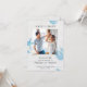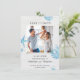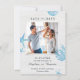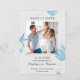 This trendy Save the Date has a nautical or beach theme. It features a white wood background for a rustic look. Watercolor style drawing of seashell, starfish, and coral decorate the design. A picture of the couple is at the centre. This card is perfect for a beach wedding, summer wedding, rustic wedding, or destination wedding. The look is fresh, airy and cozy.