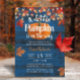 Little Pumpkin Rustic Autumn Leaves Navy Barn Wood Baby Shower Invitations.