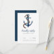 Rustic Navy Blue Anchor Rope Nautical Wedding RSVP Card