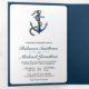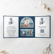 Rustic Navy Blue Anchor Rope Photo QR Code Wedding Tri-Fold Invitation