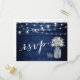 Rustic Navy Blue Baby's Breath String Lights RSVP Invitation Postcard