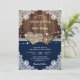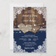 Rustic Navy Blue Barn Wood Burlap Lace Wedding Invitation