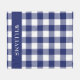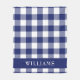 This rustic navy blue and white buffalo check pattern blanket has a navy blue strip on the bottom with a family name in white text. Personalize with your own name or to give as a gift.