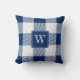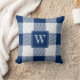 Rustic Navy Blue Buffalo Plaid Check Monogram Throw Pillow