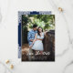 Rustic navy blue wedding photo save the date card with modern calligraphy ideal for a rustic country/barn wedding party.