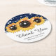 Rustic Navy Blue Burlap Sunflower Wedding Round Paper Coaster