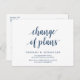 This is the modern minimal simple clean design themed, in Navy Blue font, Wedding party invitation Rescheduled (postponed / postponement) postcard (change of plans) . It is the perfect and elegant way to make the reschedule announcement to your friends and family.