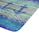 Ocean nautical themed coastal decor of three navy blue Nautical Anchors on old weathered wood. Nautical designs for coastal living or beach décor. Perfect for a seaside cottage or a beach house. Set in the centre of a naval blue graphic of ocean waves.
