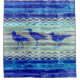 Seabird nautical themed coastal decor of three navy blue Sandpiperson old weathered wood . Beach bird designs for coastal living or beach décor. Perfect decorations for a seaside cottage or a beach house. Set in the a centre of naval blue graphic of ocean waves.