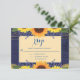 Rustic Navy Blue Gold Lace Sunflower Wedding RSVP Card