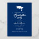 Rustic Navy Blue Graduate Photo Graduation Rose Gold Foil Invitation. Trendy gold foil graduation cap, text and details on the front. Rustic beige and navy blue background. Add your photo on the front. The invitation details are on the backside.